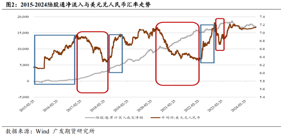 历史数据(2015-2024年)显示,外资流入A股与人民币汇率呈显著正相关:流入期(如2017-2018、2020-2021):人民币升值阶段,陆股通净流入推升沪深300指数同步上涨。流出期(如2018-2019、2022-2023):美元走强导致外资撤离,股指回调。外资主要通过陆股通渠道布局,其持股市值从2018年6,558亿元增至2025年7月的2.3万亿元。